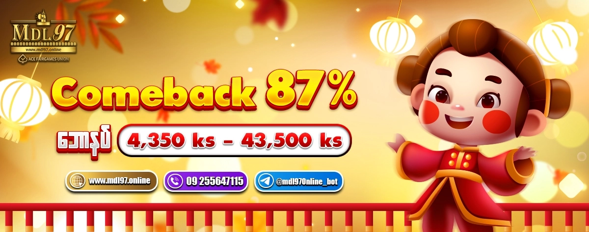 👉🏻 ကစားၿပီး End Promotion မရပါက 10 မိနစ္ေစာင့္ၿပီး ျပန္ႏွိပ္ၾကည့္ပါ ဤပ႐ိုမိုးရွင္းကို 🎰 MDL97 🎰 မွအခ်ိန္မေ႐ြးေျပာင္းလဲႏိုင္သည္။