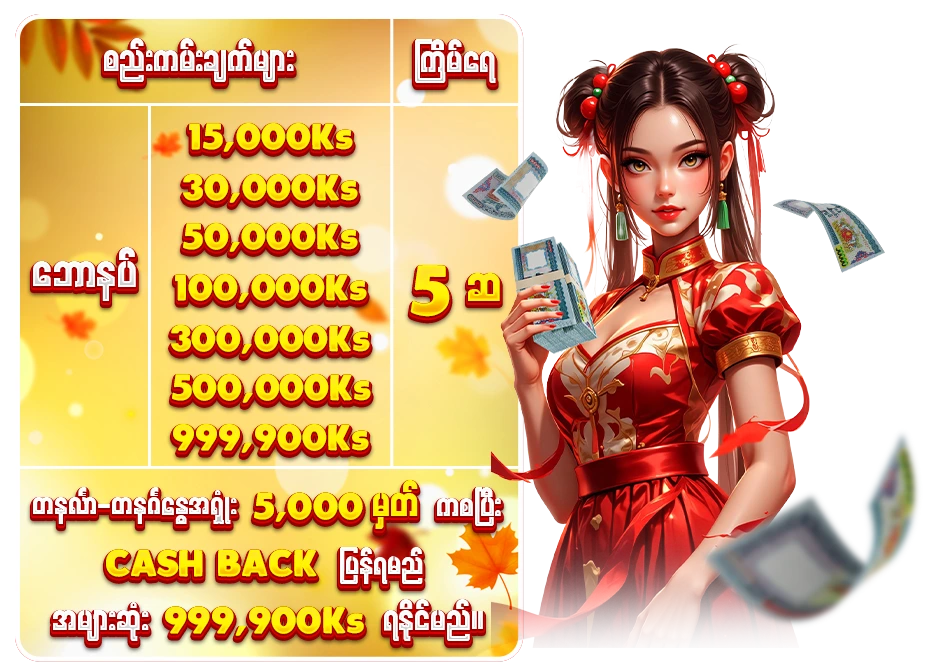 💋 50,000 Ks ဖရီး 50,000 Ks ႀကိမ္ေရ 17 ဆ ထုတ္ေငြ 399,900 Ks