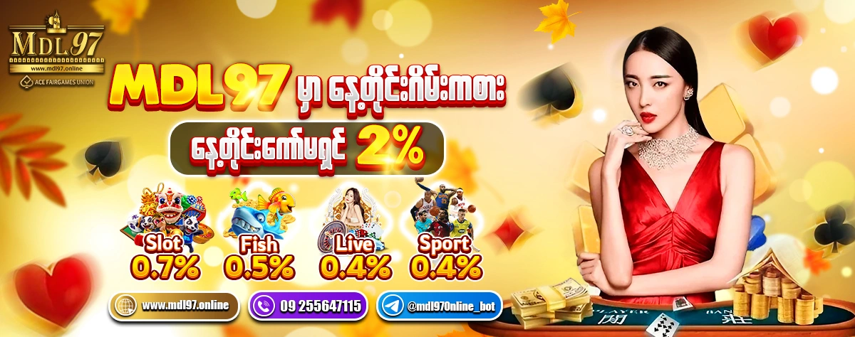 👉🏻 MDL97 ၏ဂိမ္းမ်ားမွ ႐ိုး႐ိုးသြင္းေငြ၏ ပ႐ိုမိုးရွင္းမပါေသာ Coin In ကိုသာတြက္ခ်က္မည္ျဖစ္ပါသည္။