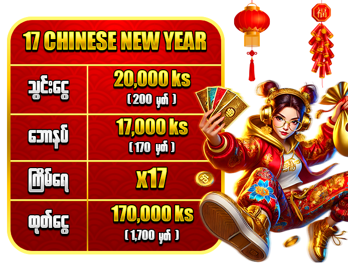 🌟 ႀကိမ္ေရ 17 ဆလုပ္ၿပီးထုတ္ေငြ 170,000 Ks (1700 )မွတ္ထုတ္ ႏိုင္မည္ ။